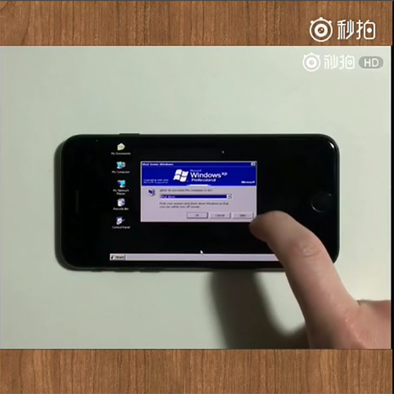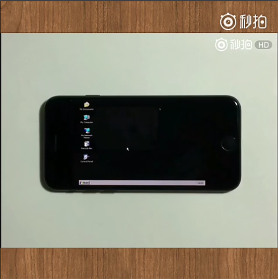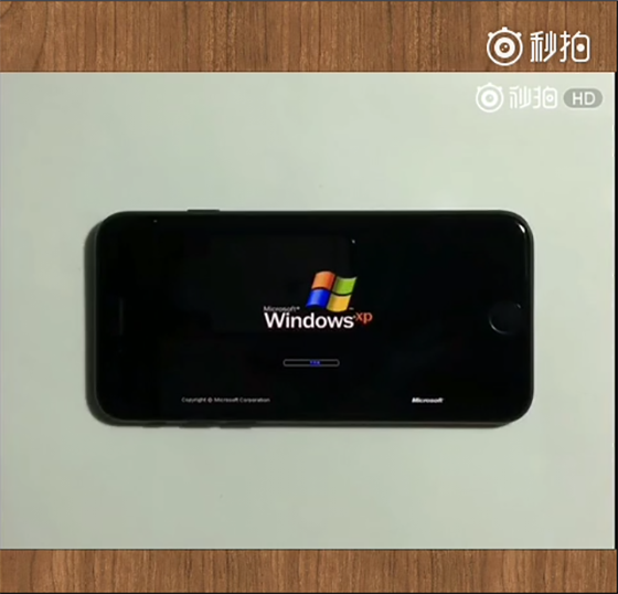 有一位動手能力強的外國友人成功的在搭載iOS10.2.1系統的iPhone7上運行Windows XP,不是廣大網友所說的圖片刷機法,而是實實在在的運行Windows XP,以下是視頻截圖。