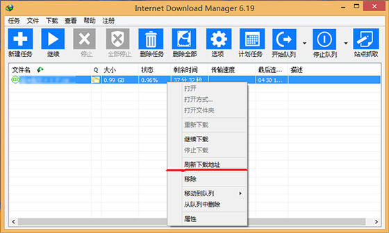 1.首先選中無法繼續下載的文件右鍵點擊【刷新下載地址】