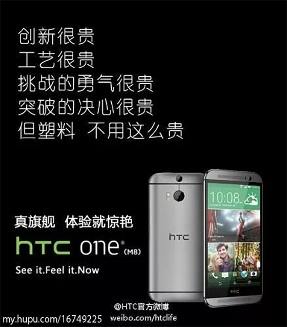 2.易漲臉:你拿著金屬機身的手機與塑料機身的手機兩者一作對比,你發現金屬明顯要比塑料技高一籌,拿出去倍兒有面子,略重的手感讓人安心,用量足,而塑料則是給人以一種廉價感,感覺有偷工減料之嫌。早前HTC還為此嘲諷過三星“塑料,不用這么貴”。