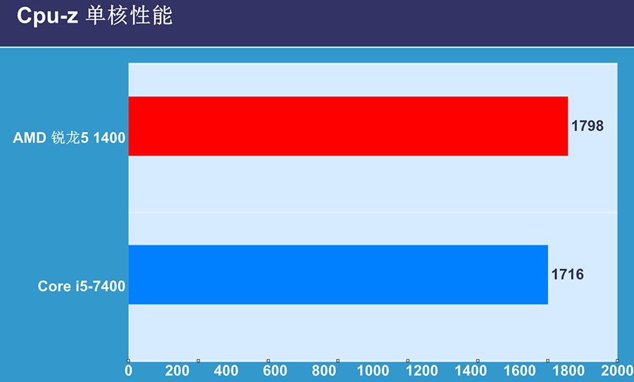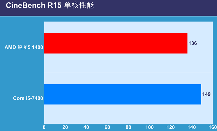 從以上的測試成績可以看出,在默認(rèn)頻率下銳龍5 1400憑借超線程技術(shù)的優(yōu)勢,在多線程性能上相對酷睿i5-7400有著不小的優(yōu)勢,雖然單線程性能上略有差距但總體表現(xiàn)依舊是瑕不掩瑜。