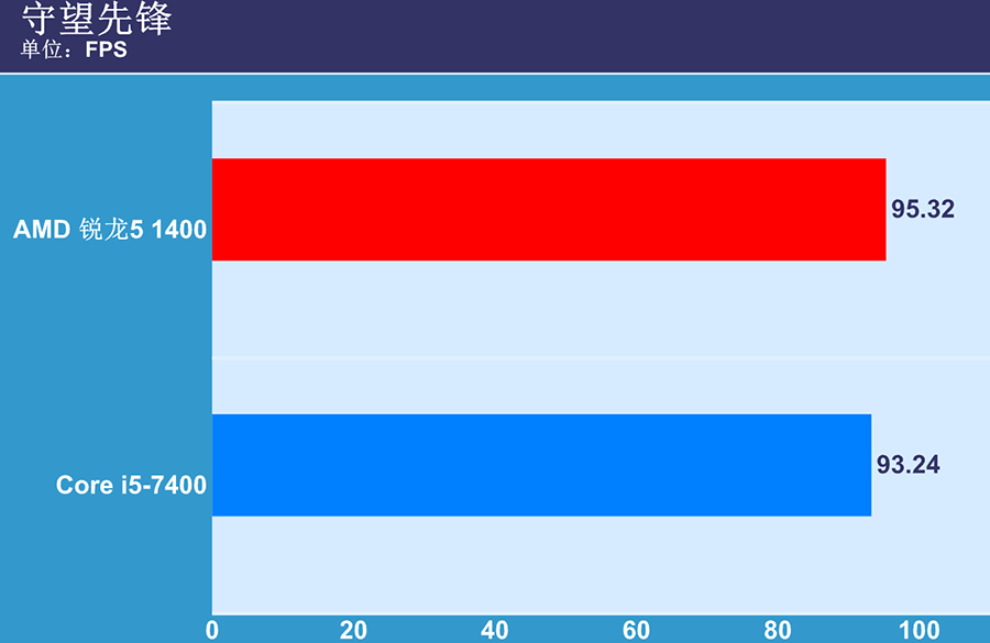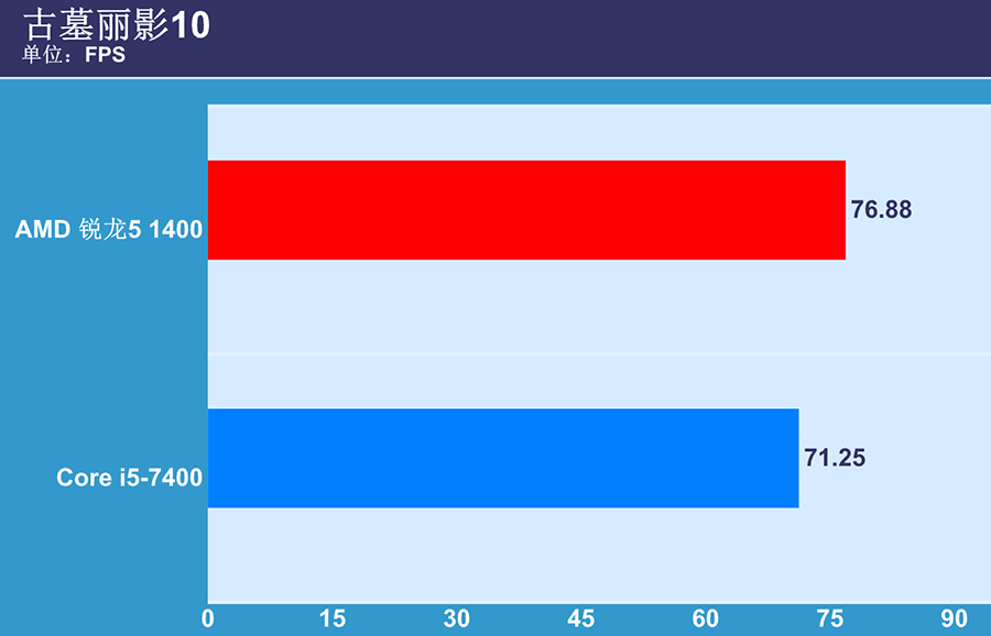 在接下來的游戲性能測試中,銳龍5 1400在對CPU性能更敏感的《地鐵:最后曙光》,《守望先鋒》和《古墓麗影10》中的表現(xiàn)都非常不錯,默頻下比酷睿i5-7400表現(xiàn)更好。