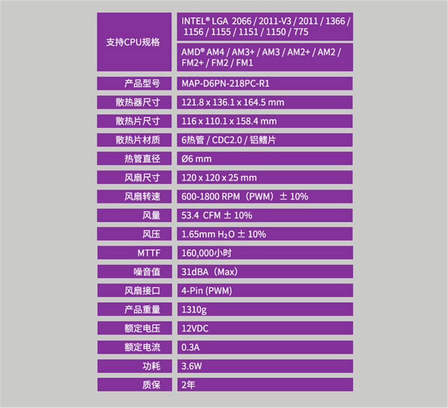 散熱器主體為六熱管,雙塔式設計。122x136x165mm的尺寸看起來非常具有沖擊感,1.31kg的重量提在手上感覺沉甸甸的。