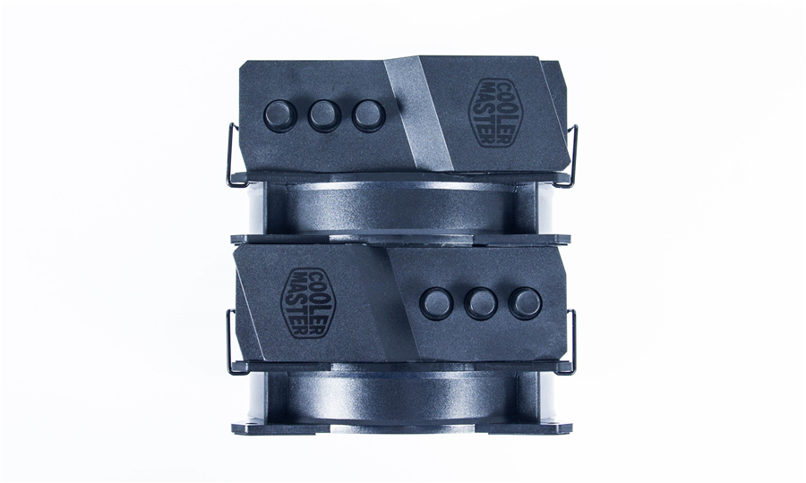 T620P RGB自帶了兩把原廠MF120R AB扇,支持1670萬色RGB燈效。兩把風扇在雙塔之間交錯擺放,通過自帶的卡扣,風扇能夠非常簡單的徒手裝卸。
