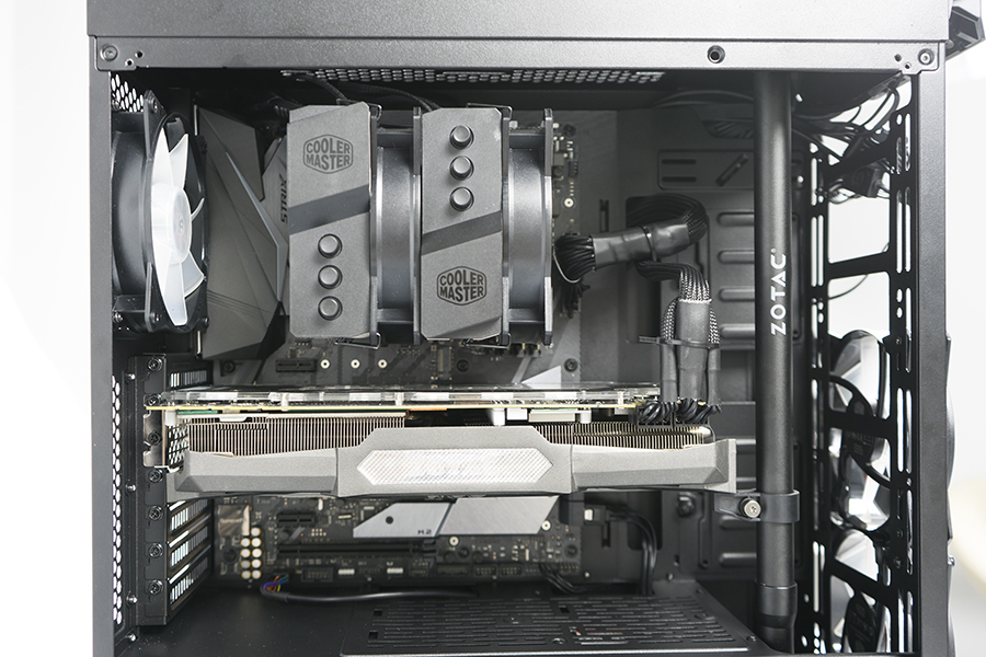 對于這么一個大家伙,拿什么機箱裝它也讓小編糾結了一陣。最終我們選擇了酷冷家新出的中塔機箱MB500 RGB毀滅者三代。如此選擇原因有二:1、這么裝夠極限,我們也想試試能不能裝得進;2、中塔機箱的空間更能夠考驗散熱效能。