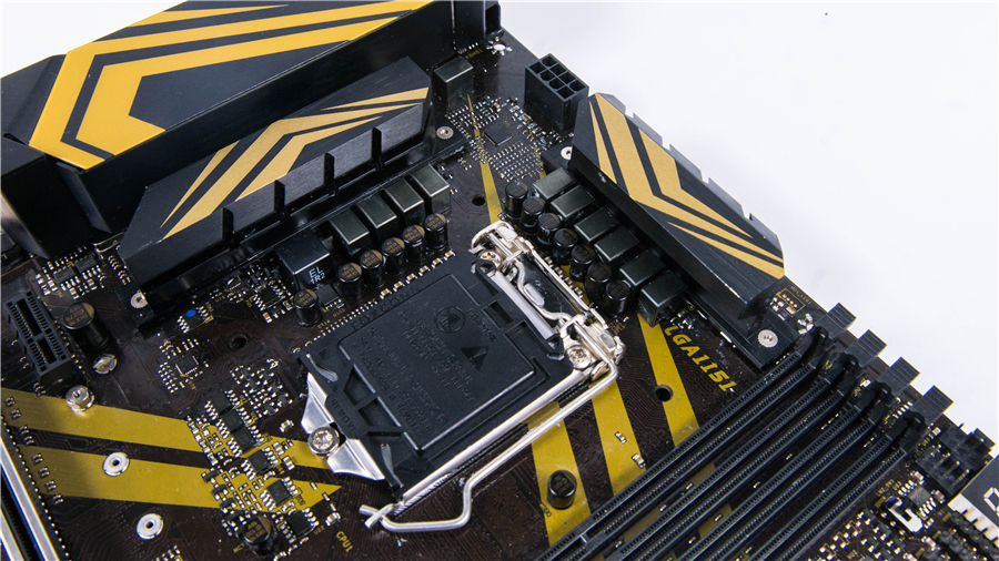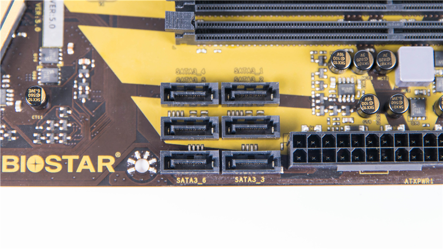 相較于上代的Z270產品線,映泰Z370GT6采用了更為鮮艷大膽的黑金配色。金色線條與黑色底色營造出了一種很“正”的競賽感,與“RACING”系列的定位十分契合。整體感覺既不浮夸,也不顯得平庸,可以說十分討喜。