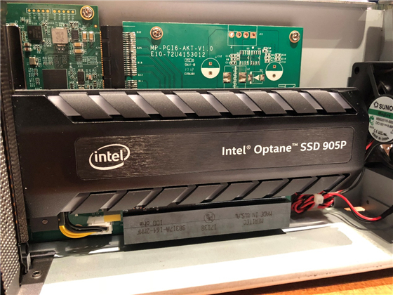 分享會后的媒體交流會上,英特爾首次展出了基于傲騰 SSD 905P的外置儲存產(chǎn)品。