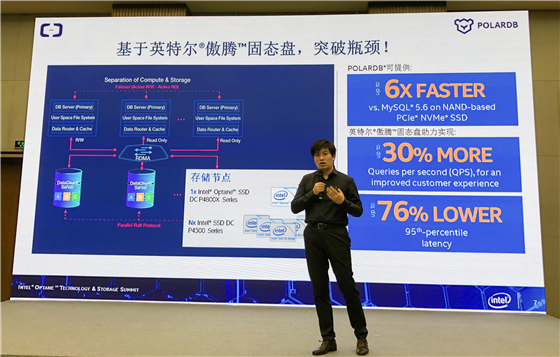 阿里云數(shù)據(jù)庫業(yè)務(wù)總經(jīng)理曹偉先生在會上進行了主題為《POLARDB深度解析:一款云原生的數(shù)據(jù)庫》的演講,分享了英特爾傲騰固態(tài)盤所帶來的技術(shù)進步。