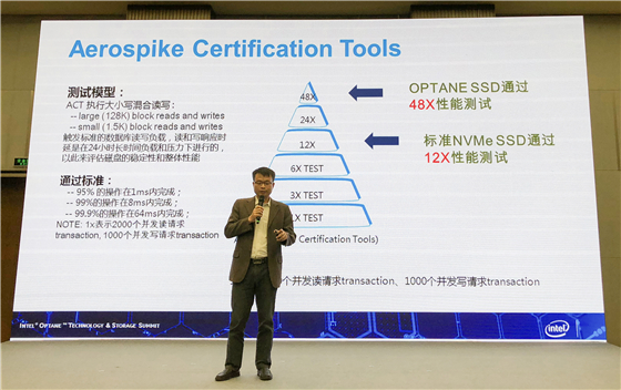 華為智能計算產(chǎn)品線 SSD業(yè)務(wù)總經(jīng)理趙春輝先生在會上進行了主題為《新介質(zhì)帶來的加速計算》的演講,對英特爾傲騰固態(tài)盤的性能進行了詳細的解析。