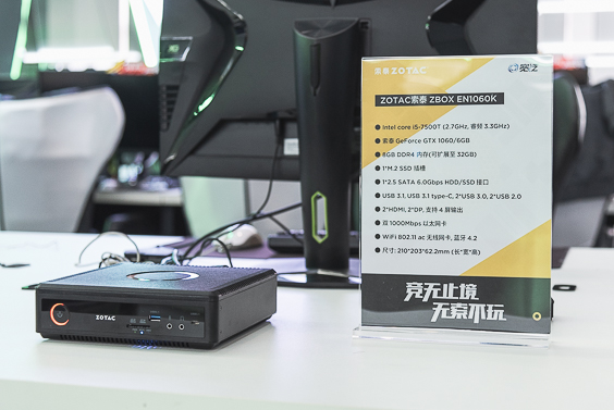 值得一提的是,現場還擺放了多臺索泰ZBOX讓玩家們體驗,雖然體積迷你,但搭載了高性能硬件,比如:索泰ZBOX EN1060K具備了i5-7500T CPU、8GB DDR4內存及GTX 1060 6GB顯卡,實際游戲體驗不輸大型游戲PC主機。