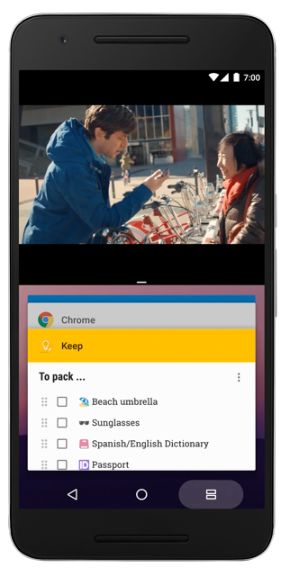 多窗口任務模式可以并排運行兩個應用程序,就像你可以在iPad上運行iOS 9。這種多任務模式在平板Pixel C可能會最有用,但同時也適用于智能手機。
