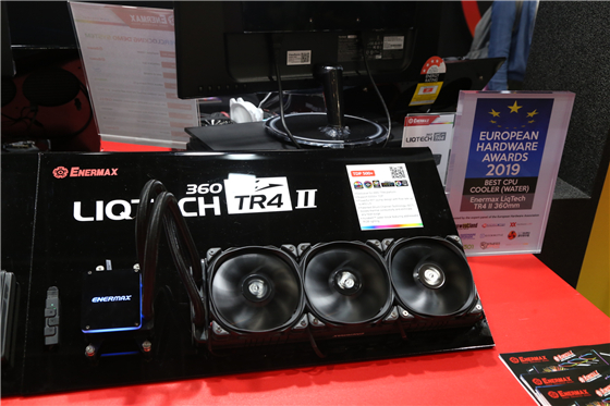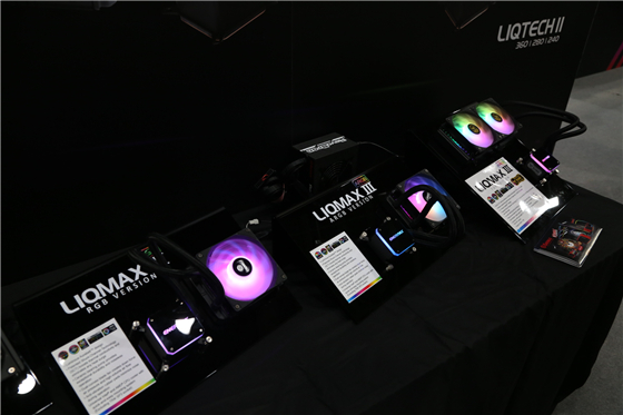 安耐美展臺上的明星產品當屬LIQTECH II幻彩銳龍一體式水冷。這款產品共有240/280/360三種規格,優秀的整體設計能最高承載500W+的TDP。LIQTECH II一體式水冷以其優秀的實力榮獲歐洲優秀電腦硬件獎年度最佳CPU水冷散熱器。