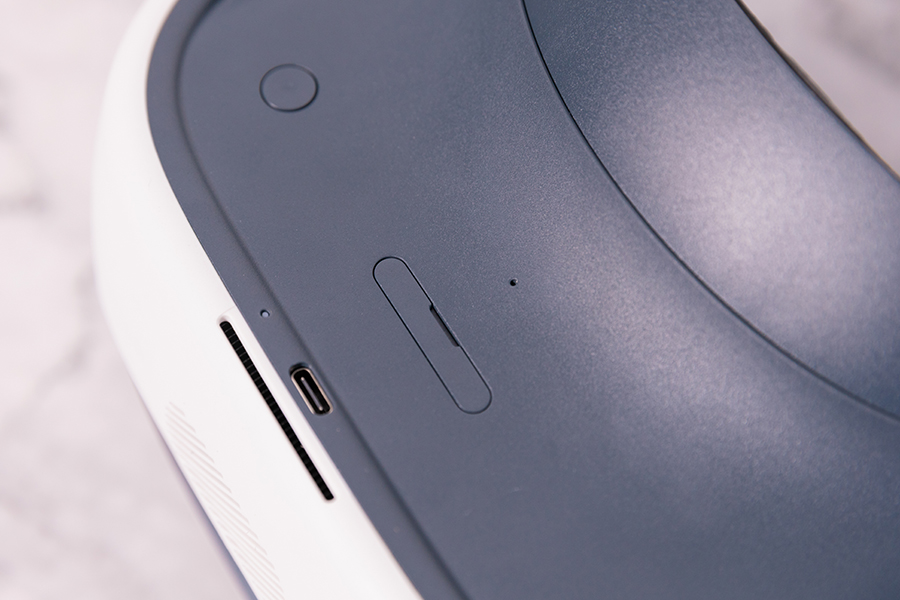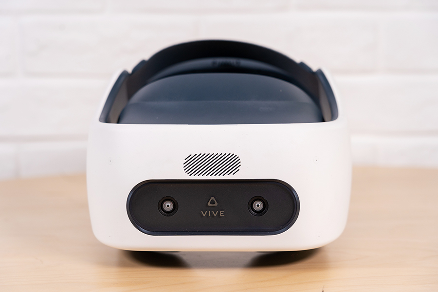 VR頭顯的外觀上Vive Focus Plus延續了Vive Focus的設計,機身尺寸193mm *211mm*143mm,重量498g。頭顯的正前方看似有左右兩只眼睛,中間標有顯眼的VIVE logo,頭像頂部集成了頭顯的開關按鍵,Type-C接口以及指示燈。