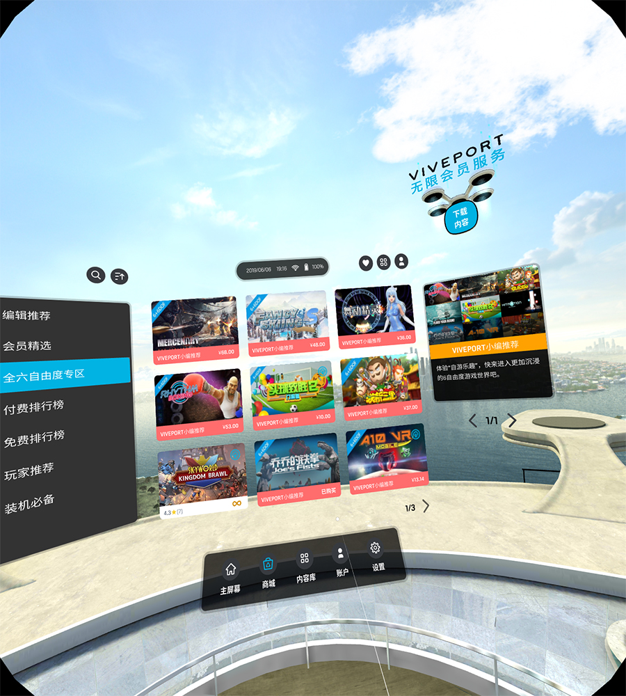 玩VR除了操控體驗好之外,內容也是不可或缺的,有線VR設備只要能接上電腦,通過Steam平臺就能玩上大量的優質VR游戲,串流電腦的VR在線視頻就能享受VR影片,而一體機就不行了,因此一體機的VR設備中,內置的資源是否豐富同樣也是這款產品的核心競爭力。