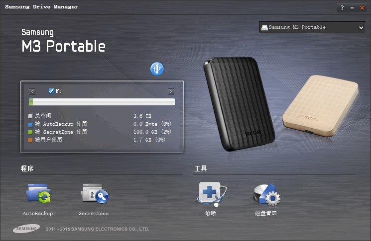 三星的產品一向給人高檔、品質優的形象,在2015年,三星推出了一款M3 Portable移動硬盤,2.5英寸的大小,容量高達4TB,同時擁有獨特的防震、節能降噪的設計,重量也只有242g,都展示著這款硬盤不俗的內在。