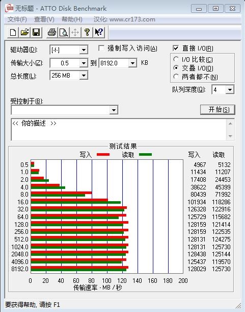 上圖中可以看到三星M3 Portable 移動硬盤最高寫入速度達到128MB/s,最快的讀取速度達到125MB/s,數據傳輸頻率非常穩定,讀寫速度非常可觀。