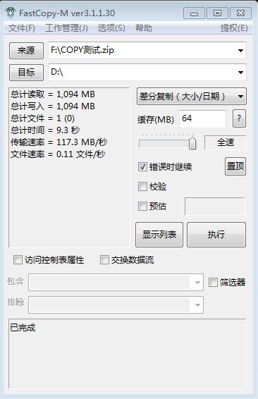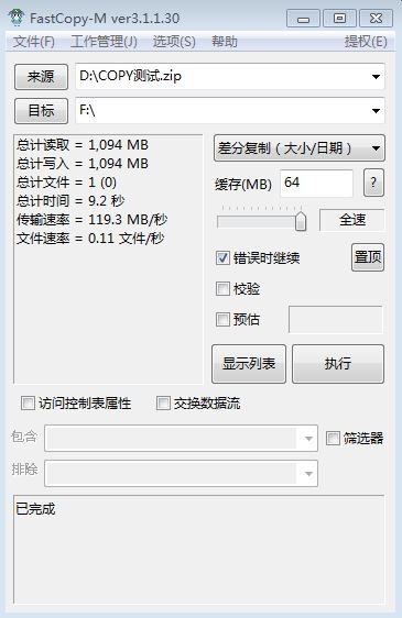 接下來我們用FastCopy來模擬真實讀寫操作,測試該款硬盤的真實讀寫速度。