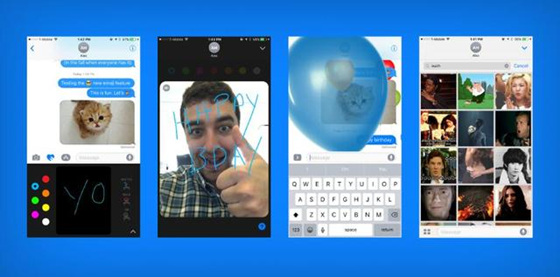對于iOS 10來說,新增的一項優異功能就是效率提升的消息應用。iOS 10的消息應用功能增加了表情符號、有趣的消息視覺效果等。此外,iMessages應用整合了一些新的功能,能夠讓用戶使用像Yelp、Venmo和Fandango之類的應用,而且不需要打斷用戶的文本對話。