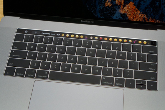 新的Pro配備在空間分為灰色和銀色兩種,這次蘋果電腦背后的發光標志也取消了,顯得沒那么亮了。在15英寸機型有一個很大的觸摸板和大喇叭網罩分別安放在鍵盤的左側和右側。這次蘋果的亮點就在于加了觸摸屏,而在觸摸欄中顯示了極其可愛的表情符號,這些表情符號就跟我們聊天頁面的表情符號一模一樣,這讓看過該款新品的消費者印象深刻。亮度和聲音按鈕也改為觸摸,改用滑塊控制,總的來說,調節起來方便了許多,這樣可以大大增加你的工作效率。
