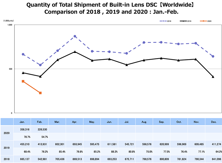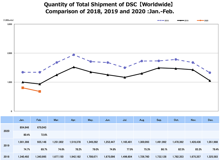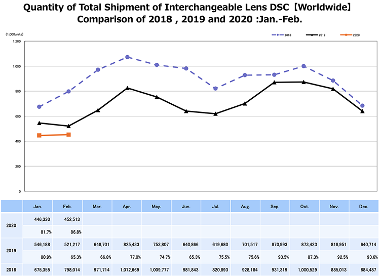 Napoleon Chan / 2020-04-03 11:3633885CIPA(相機與影像產品協會)剛剛公布了2020年1至2月份全球相機出貨量,總數為1484689臺,只有2019年同期的76.6%,下跌達兩位數。