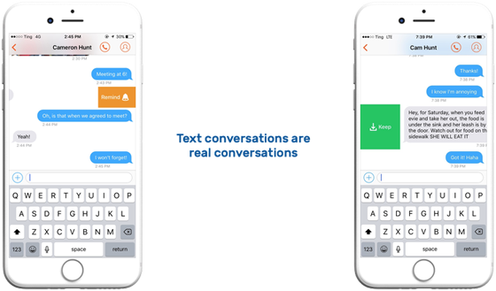 一旦“聽”設置完畢,你可以做很多你之前使用普通手機號碼所不能做的事。比如,你可以從短信聊天中直接設置一個事件來提醒當你們正在討論要去做某事的時候,你也可以把大體的思路方向備注下來以方便后續做選擇。你還可以屏蔽聯系人,某些你不愿被他打擾的人(比如說前任?)。你也可以禁用語音信箱。想少一些打擾的時候,你可以選擇只接收來自已收藏聯系人的信息。另一個方便的功能是,你可以設置短信,電話自動應答。