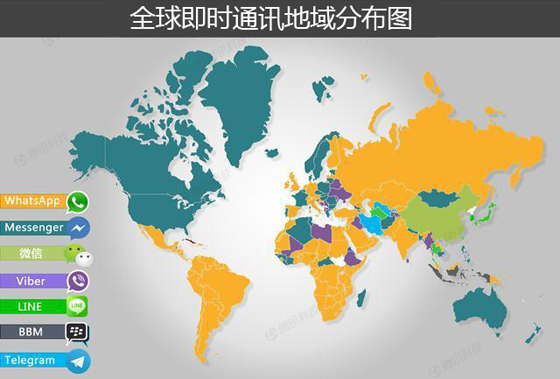 從地域分布來看,Facebook幾乎統治了全球。為什么說是幾乎,因為在中國,微信是即時通訊領域不可替代的霸主,再加上中國龐大的人口基數,所以決定了微信在全球即時通訊應用格局中不可或缺的地位。