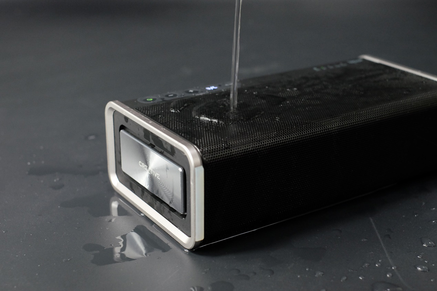 聲霸鑼智能移動版是聲霸鑼系列首款支持防水性能的音箱,支持IPX6級別的防水,意味著聲霸鑼智能移動版,可以防止大浪侵襲而造成的進水損壞,但不能直接浸入到水中使用,這點大家可要特別注意,支持防水并不等于可以浸入到水中使用。