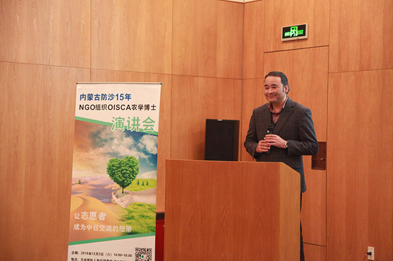 演講會上,日本農學博士出身,在內蒙古阿拉善15年間從事防沙治沙研究的富堅博士作為主講人,與社會各界人士、大學生、中日友好的朋友們,分享了防沙經歷。緊接著,兄弟(中國)董事長加藤和利先生帶來寄語,表示志愿者社會貢獻活動至關重要,通過與地區社會進行雙向交流,可以了解到了公眾對兄弟(中國)的要求和期待,進一步明確兄弟(中國)應該承擔的責任。同時,加藤先生也呼吁有更多人能自主行動,認識到環保并非他人之事,能夠主動、自律地為社會做出貢獻。上海交通大學已經連續2年參加進內蒙古項目中。當日,上海交通大學農業與生物學院的學生志愿者代表,也上臺分享了加入內蒙古項目的深切感想與心得體會。