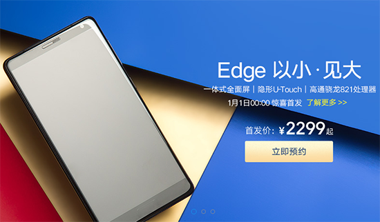 配置方面,ZUK EDGE具備2.35 GHz的高通821處理器,4GB/6GB + 64GB存儲,5.5英寸1080P 85% NTSC色域TDDI屏幕,2.5D康寧大猩猩玻璃,前置800萬像素攝像頭,后置1300萬像素攝像頭,3100mAh電池。ZUK EDGE一共有三個版本:4GB DDR4 RAM + 64GB UFS2.0 ROM的旗艦版售價2299元,6GB DDR4 RAM + 64GB UFS 2.0 ROM的臻享版售價2499元,4GB DDR4 RAM + 64GB UFS2.0 ROM的李敏鎬定制版售價2499元,旗艦版和臻享版元旦正式發售,李敏鎬定制版采用預售模式,昨天已經開啟預售。