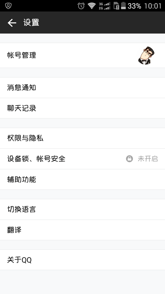 手機(jī)QQ國際版的軟件簽名為“QQi”,可以與普通版的手機(jī)QQ共存,不會起沖突。軟件界面方面,手機(jī)QQ國際版非常簡潔,有點類似于WindowsPhone版手機(jī)QQ的風(fēng)格,配色為基本的黑白配色,不支持主題更換,也沒有花哨的自定義掛件和字體等功能。聊天功能方面,除了不支持搶紅包功能,語音聊天、視頻聊天、傳文件等實用功能都得到了保留。下面是手機(jī)QQ國際版的一些截圖: