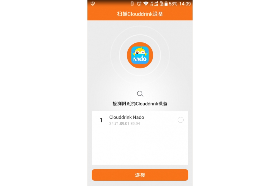 首次進入APP,軟件會申請打開藍牙權限,并搜索連接附近的Nado兒童水杯,而首次進行連接,Nado兒童智能保溫杯必須按壓按鈕激活才能正常和手機APP連接上。