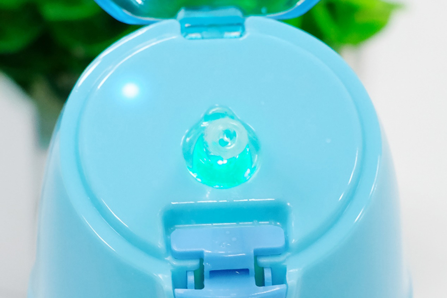 首先,當水杯內置電池還有電量的時候,按壓水杯上部的按鈕,杯蓋會彈起,吸管底部會亮不同顏色的燈,不同顏色分別代表不同的水溫:默認設置狀態下,0℃-30℃時為藍色,表示水比較涼;30℃-45℃時為綠色,表示水溫合適,適宜兒童飲用;45℃以上時為紅色,表示水溫較燙,不適合兒童直接飲用;這一個功能就是水溫提示功能。把抽象的水溫通過傳感器轉換成直觀的顏色提示算是比較貼心,但是我個人覺得要是能結合目前市面上那種恒溫杯把裝進去的冷水或熱水都轉換成37℃左右溫水那就顯得更完美更智能了。另外目前Nado兒童智能保溫杯在內部水溫過高的時候,吸管還是能正常把水吸出來,這有可能會燙傷到小朋友,也是設計上不足的地方。