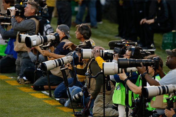今年的美國超級碗上,包括Peter Read Miller及Damian Strohmeyer等資深記者都使用了佳能器材拍攝,有的記者已經用上佳能1DX Mark II了。相比之下,使用尼康設備的記者則顯得寥寥無幾,毫無疑問佳能在專業人士眼里更加出色。不過可千萬別以為佳能只是得到了專業人士的青睞,當天最引人注目的毫無疑問是客串了一把業余攝影師的NBA球星凱文杜蘭特,他使用的是一臺佳能7D相機。