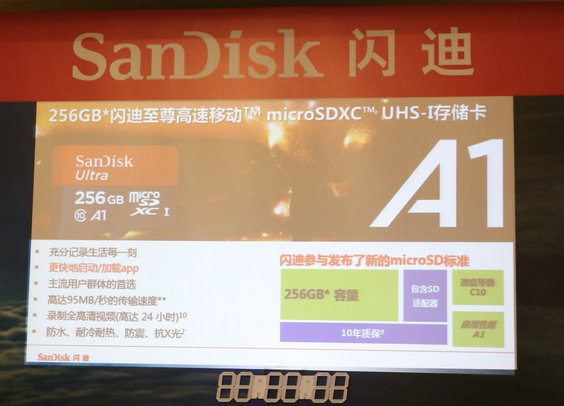 2017年3月1日,西部數(shù)據(jù)公司旗下品牌閃迪在北京發(fā)布了多款移動(dòng)存儲(chǔ)新品,其中包括了滿足A1應(yīng)用性能等級標(biāo)準(zhǔn)需求的移動(dòng)microSD卡,256GB 閃迪至尊高速移動(dòng)microSDXC UHS-I卡進(jìn)階版,高性能的256GB 閃迪至尊超極速 USB 3.1固態(tài)閃存盤以及兩款I(lǐng)OS平臺(tái)的無線閃存盤升級到256GB容量的閃存產(chǎn)品。