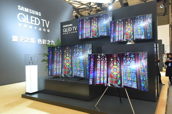 三星賦予了這款全新電視一個響亮的名字,QLED光質量子點電視,寓意擁有神奇的“量子之光”、“色彩之力”。據悉,在AWE會場,三星展示了數十臺不同品類的電視,最重量級的QLED光質量子點電視就提供了4個系列,8個型號,橫跨55英寸到88英寸等多個尺寸段。