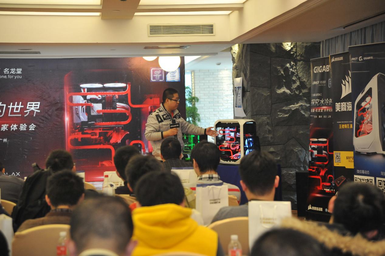 隨著個人PC市場越來越成熟,許多DIY玩家開始追求個性化、高性能的定制機。2015年9月19日,由技嘉與名龍堂聯合舉辦的水冷玩家體驗會上海站正式開幕。在本次的體驗會中,現場邀請了玩家、廠商與經銷商三大群體共同探討水冷方案的產品理念及技術,同時技嘉聯合影馳、海盜船為現場的玩家們展示了旗下的眾多產品,還有名龍堂提供的水冷平臺,吸引了眾多玩家們關注和體驗。