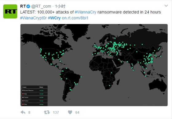 在國內由于幾家較大的電信運營商已經屏蔽掉了個人用戶的445網絡端口,但是在教育網、部分運營商的大局域網、校園企業內網依舊存在大量暴露的攻擊目標。所以,國內教育網是遭受此次攻擊的重災區,許多高校的電腦已經被大面積感染,部分教學系統陷入癱瘓,一些企業內網、政府機構專網也受到攻擊。