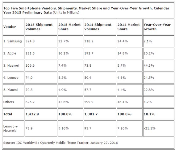 然而,小米的光環(huán)被同為中國廠商的華為被掩蓋,后者智能手機(jī)出貨量同比增長44.3%。當(dāng)小米在2014年發(fā)展順風(fēng)順?biāo)畷r(shí),有觀點(diǎn)認(rèn)為該公司可能最終將超越蘋果和三星電子,這種情況不僅是在中國,而且可能是在全球。小米雖然計(jì)劃在近期向西歐市場進(jìn)軍,但總體向外擴(kuò)張有限,在經(jīng)歷令人失望的2015年后,其超過全球領(lǐng)先智能手機(jī)制造商的可能性越來越小。