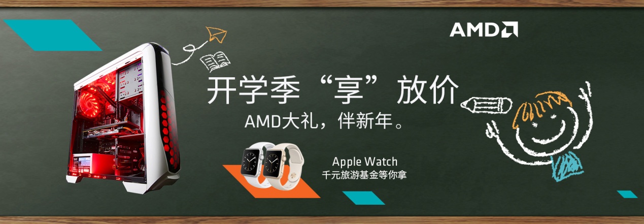開學(xué)季來襲,AMD天貓品牌站為學(xué)生族準(zhǔn)備了實(shí)惠多多又豐富的產(chǎn)品,還有Apple Watch、千元旅游基金免費(fèi)給你拿!選擇AMD,得到更多,讓你的學(xué)習(xí)生活多姿多彩!