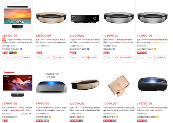 就目前的激光電視市場來說,已經有很多廠商看到了這里面的巨大的發展潛力,目前市場上也流行很多激光電視,但是價格都比較高,以京東價格為例,主流的激光電視價格都在1萬~4萬之間。