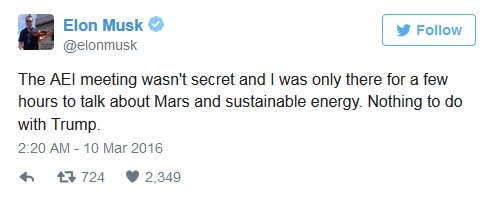馬斯克表示,雖然自己確實不太喜歡特朗普這種大嘴巴,但他們只是在會議上討論火星問題和可持續(xù)新能源的發(fā)展和建設問題。