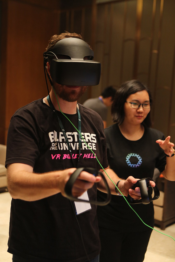 HYPEREAL一直強調自主研發,從開始就建立了自家SDK 以及一整套開發者服務體系, 囊括工具支持、內容上傳、QA、測試以及正式上線全過程。 在會上HYPEREAL的QA總監陳磊詳細介紹了內容集成到HYPEREAL平臺的詳細流程,同時根據經驗,為開發者提出了幾個最佳實踐的建議。軟件方面,HYPEREAL的軟件負責人羅繼恩提到,HYPEREAL一直致力于提升VR顯示的性能,通過自主開發的Space-Time Image Reconstruction, Distortion Mesh, Queue Ahead等技術,極大的提升了VR游戲的舒適度,降低了游戲里的眩暈感, 對電腦的配置要求也可以降低。在清晰度方面,HYPEREAL應用 Super Sampling,Compositor Layer等技術,大幅提升清晰度,降低了紗窗效應。短期內,HYPEREAL會推出Platform SDK, 以推動VR聯網游戲的制作,在未來,HYPEREAL還計劃對化身、大數據、混合現實、音頻、無線和Web 等等SDK 進行支持。