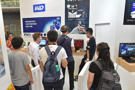 人氣火爆的VR體驗區(qū),則是大排長龍,由WD Black PCIe SSD+WD Black HDD組成的VR體驗平臺,為小伙伴帶來暢快極致的VR游戲體驗。