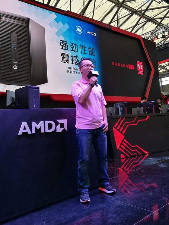 在展臺發布儀式現場,來自AMD的大中華區國際客戶高級銷售總監晁亞新先生上臺致辭,晁先生表示:“基于AMD 銳龍處理器的HP Elite desk 705G3惠普精英系列VR電腦是一款極為優秀的商用臺式機產品,其最大賣點是針對VR應用進行了專業的研發設計。我們知道銳龍處理器采用了多線程設計,對VR應用體驗及VR開發可謂游刃有余。相信在AMD 銳龍系列處理器和AMD VR-Ready系列軟硬件產品的強力支持下,惠普全新的VR電腦一定可以讓大家享受至真至幻的VR虛擬世界。”
