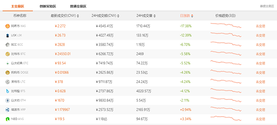 央行不動則已,一動驚人,一時間ICO市場一片哀鴻片野。通過聚幣網可以看到大部分幣種處于虧損狀態,各主要幣種跌幅基本超過30%,部分品種跌幅甚至超過50%;比特幣、萊特幣以及以太坊等“主流幣”也均出現較大跌幅。