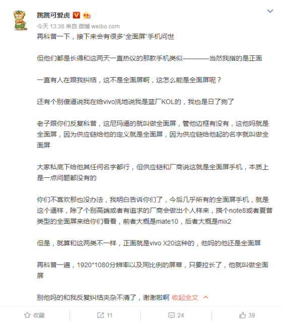 也正是處于消費者和廠商對“全面屏”的認知偏差,微博上不少人也對vivo X20這類采用了18:9屏幕,而邊框控制似乎又并不算驚艷的“全面屏”起了爭議。