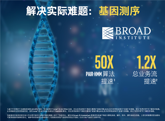英特爾還將FPGA技術加入基因測序的工作中,基于平均每秒千兆細胞更新數(GCUPS) 性能,使用英特爾FPGA 加速運行Pair-HMM 算法可使得總體基因業(yè)務流性能提升50倍,總業(yè)務流提升1.2倍。