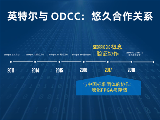 英特爾FPGA架構可以在混合云中加速工作負載,可實現第三方開發(fā)者,內部開發(fā)人員 (企業(yè),云服務商),應用用戶在公有云和私有云之間進行無縫軟件遷移。英特爾還與 ODCC保持悠久合作關系,在2017年與中國標準團體的協作, 池化FPGA與存儲,Scorpio 3.0 概念 驗證協作。