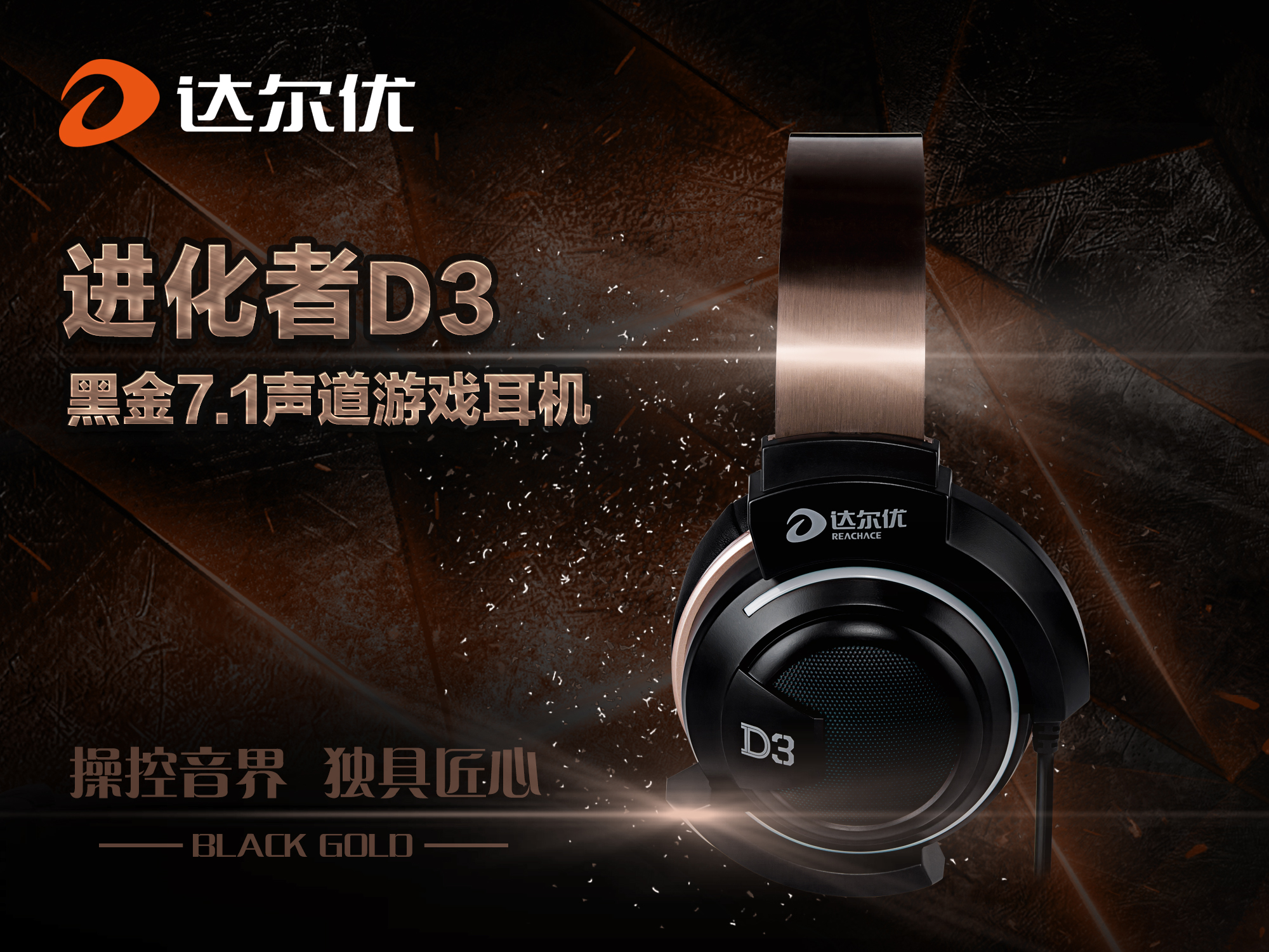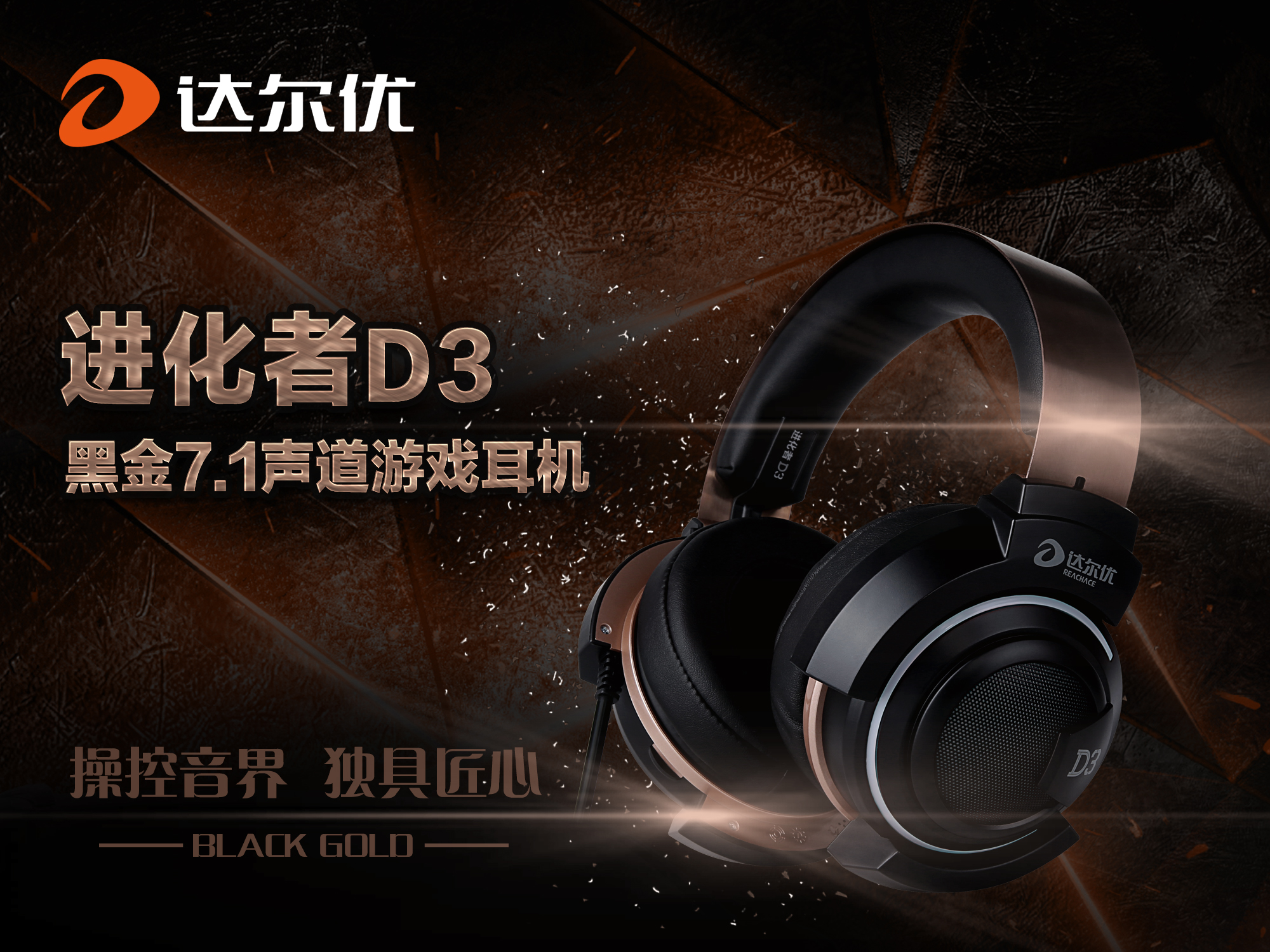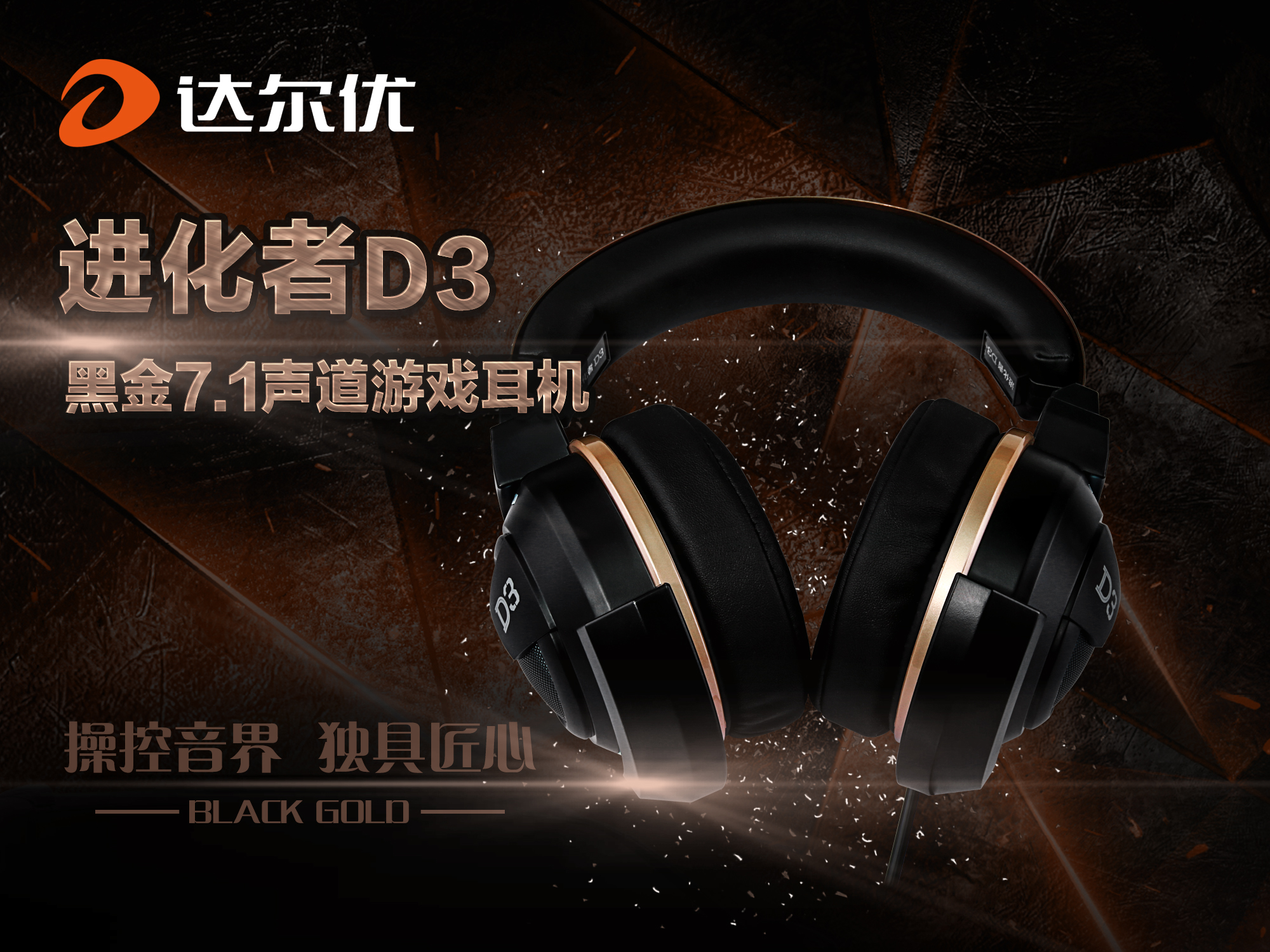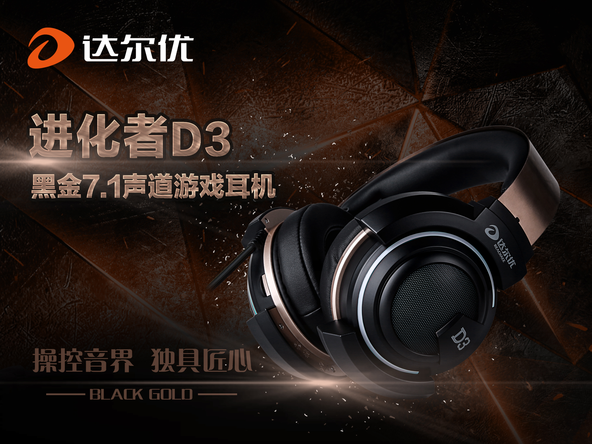 北京時間2016年3月21日,達爾優發布全新進化者系列D3黑金USB 7.1聲道版本游戲耳機,本款產品是在原有D3上增加的一個新的配色,并內置7.1聲道聲卡,USB接口即插即用,更人性化,音效更佳。