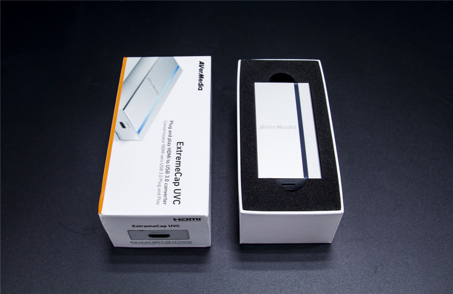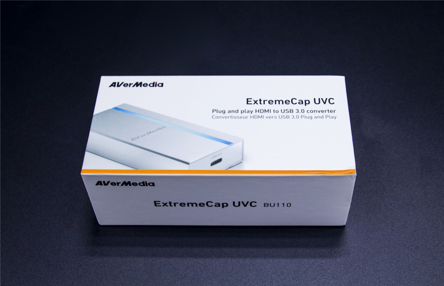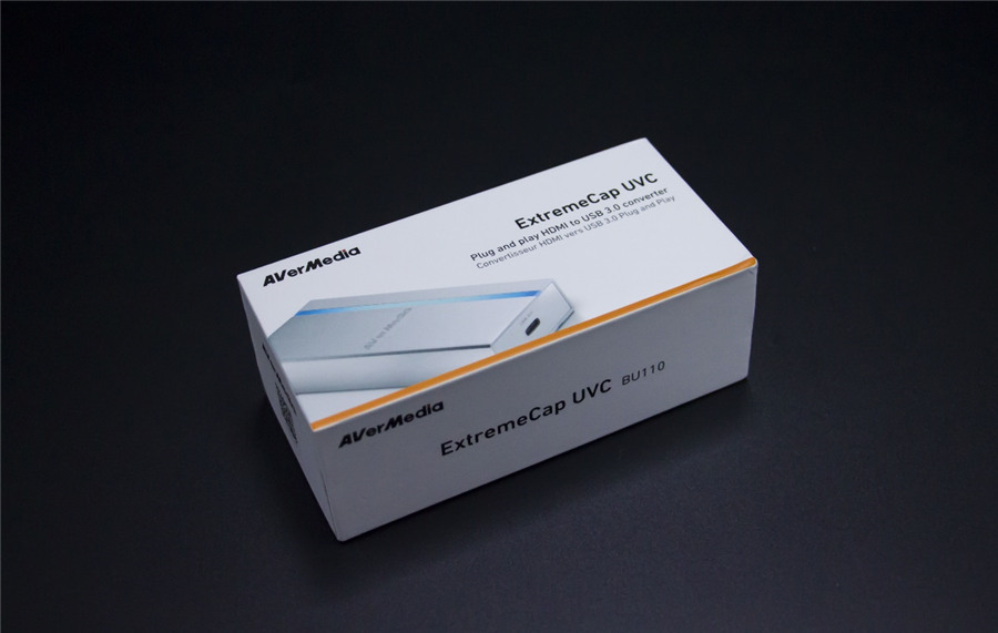 圓剛ExtremeCap UVC BU110免驅動視頻采集盒外包裝為白色硬紙盒,整體設計簡約至極,在外包裝盒表面標注了產品系列以及使用USB3.0以及HDMI接口連接。