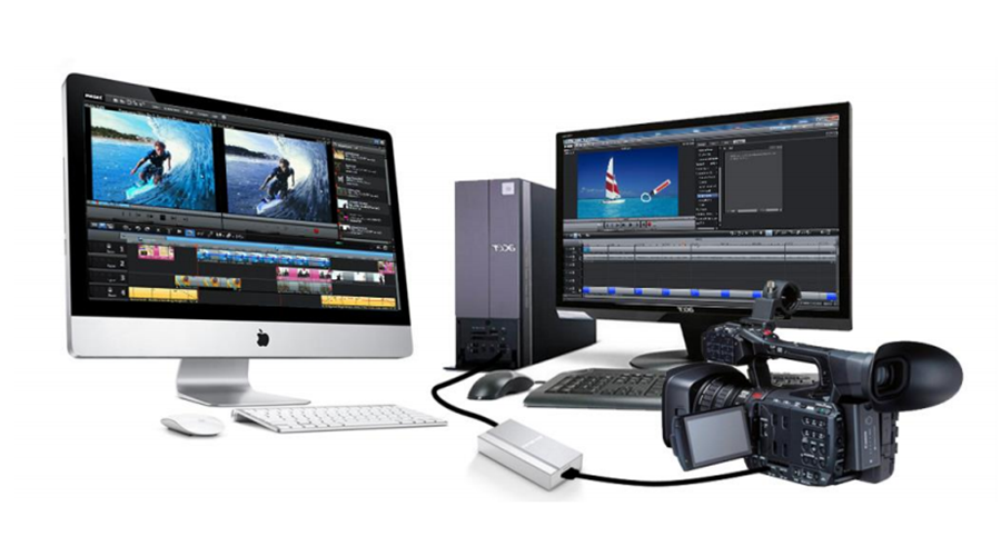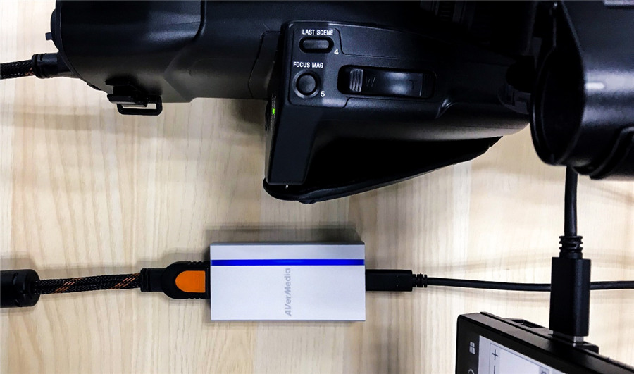 首先連接線路,BU110視頻采集器的HDMI接口端連接索尼HXR-NX100 高清攝像機,Typer-C接口連接電腦。